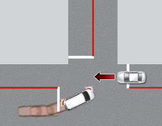 Junction Turning function will help avoid a collision with an oncoming vehicle in an adjacent lane when turning left at a crossroad with the turn signal on by applying emergency braking.