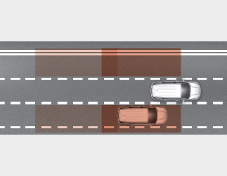 The detecting range may vary depending on the speed of your vehicle. However, even if there is a vehicle in the blind spot area, the function may not warn you when you pass by at high speeds.