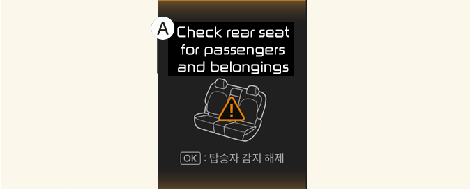 Αν δεν θέλετε να χρησιμοποιήσετε την Ειδοποίηση επιβάτη στο πίσω κάθισμα, πατήστε το κουμπί OK στο τιμόνι όταν εμφανιστεί η 1η ειδοποίηση στο ταμπλό. Με αυτόν τον τρόπο, θα απενεργοποιηθεί η 2η ειδοποίηση μία φορά.