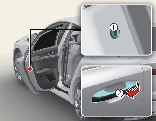 The child safety lock is located on the edge of each rear door. When the child safety lock is in the lock position (1), the rear door will not open if the inner door handle is pulled.