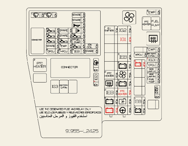 Electronic Water Pump (HEV), Battery C/FAN Relay, ICU Junction Block (IPS Control Module) |