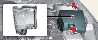 After checking the fuse panel in the engine compartment, securely install the fuse panel cover through the audible clicking sound.