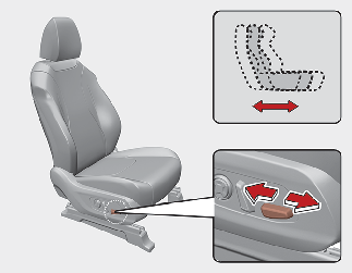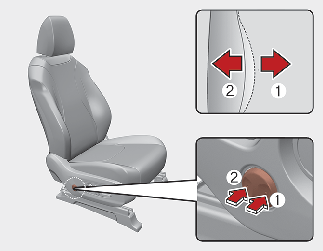 The front seat can be adjusted by using the control switches located on the outside of the seat cushion. Before driving, adjust the seat to the proper position so as to easily control the steering wheel, pedals and switches on the instrument panel.