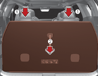 Pull down the headrests of the 4th row seats as far down as possible (1).