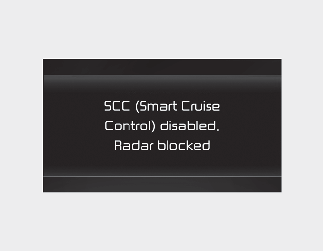 When the front radar cover or sensor is covered with snow, rain, or foreign material, it can reduce the detecting performance and temporarily limit or disable Smart Cruise Control. If this occurs, a warning message will appear on the cluster (it is turned off after a certain period of time). Smart Cruise Control will operate normally when snow, rain or foreign material is removed. Always keep it clean.