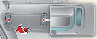 Makyaj aynası kapağını sıkıca kapatın ve kullanımdan sonra güneşliği orijinal konumuna geri getirin. Makyaj aynası güvenli bir şekilde kapatılmazsa, lamba açık kalır ve pilin boşalmasına ve olası güneşlik hasarına neden olabilir.