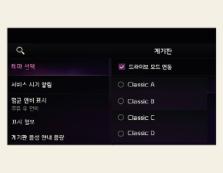 Classic A~D: 운전자가 선택한 테마로 클러스터 표시