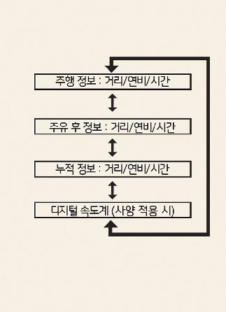 주행거리/연비/시간 초기화 시점부터 현재까지의 누적 정보를 표시합니다.