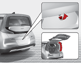 Le hayon bascule vers le haut. Vérifier l’absence d’objets ou de personnes à l’arrière du véhicule en ouvrant le hayon.