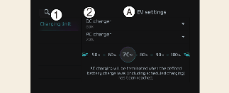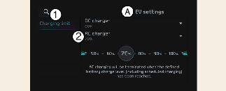 Wählen Sie das Symbol auf dem Bildschirm. Sie können die Funktionen Ladelimit, Ladestrom, Batteriezustandsmodus und Standmodus einstellen.
