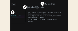 Auf dem Bildschirm des Infotainment-Systems wird EV-Einstellungen → Utility-Modus ausgewählt.