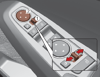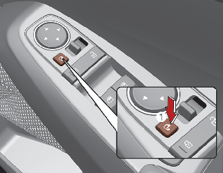 • To fold the outside rearview mirror depress the button (1).