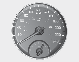 On inclines or curves, the fuel gauge pointer may fluctuate or the low fuel warning light may come on earlier than usual due to the movement of fuel in the tank.
