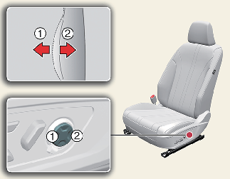 Turn the adjustment switch clockwise, the seatback bolsters will be adjusted inward.