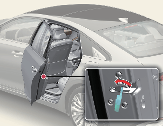 Insert the key into the emergency door lock hole and turn the key to the lock position as shown.