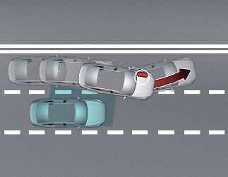 When you are driving forward, if the function judges that there is a collision risk with an approaching vehicle in the blind spot, the function will help avoid collision by applying the brake.