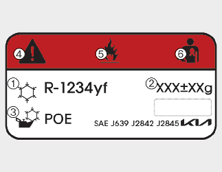 Chaque symbole et spécification sur l’étiquette du fluide réfrigérant de climatisation possède la signification ci-dessous ;