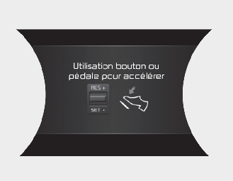 Si vous réglez la vitesse du régulateur de vitesse intelligent et que vous appuyez sur la pédale d'accélérateur, la fonction peut ne pas vous avertir étant donné que vous ne maintenez pas la distance réglée suffisante. Restez toujours vigilant en cas de danger même si aucun avertissement ne retentit.