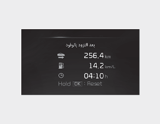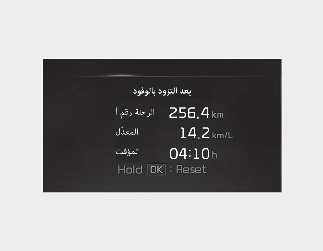 عند الضغط على زر "OK" (موافق) لأكثر من ثانية بعد عرض المعلومات من وقت التزود بالوقود، فستتم إعادة ضبط المعلومات.