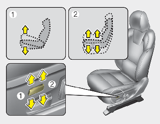 The power seat is driven by an electric motor. Stop operating once the adjustment is completed. Excessive operation may damage the electrical equipment.