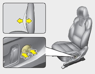 The front seat can be adjusted by using the control switches located on the outside of the seat cushion. Before driving, adjust the seat to the proper position so you can easily control the steering wheel, pedals and switches on the instrument panel.