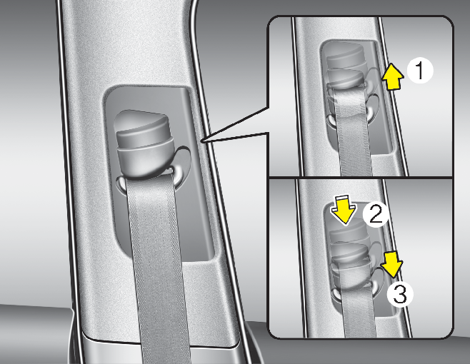 To adjust the height of the seat belt anchor, lower or raise the height adjuster into an appropriate position.