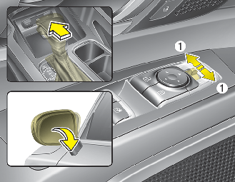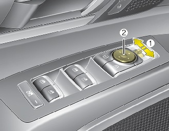 The outside rearview mirror can be folded or unfolded by pressing the button (1).