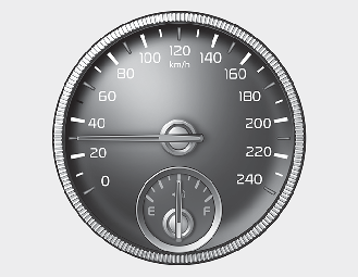 The speedometer indicates the speed of the vehicle and is calibrated in miles per hour (mph) and/or kilometers per hour (km/h).