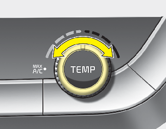 The temperature control knob allows you to control the temperature of the air flowing from the ventilation system. To change the air temperature in the passenger compartment, turn the knob to the right position for warm and hot air or left position for cooler air.