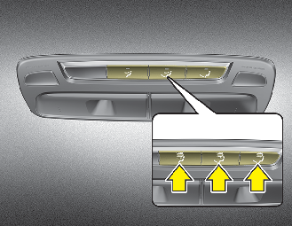 You can set the direction of air by adjusting the knob of air vents located above the 2nd-row and 3rd-row seats. Adjust the outer and central parts of the air vent to the desired positions.