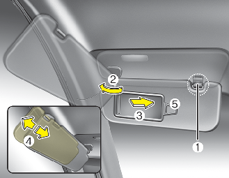 To use the vanity mirror, pull down the visor and slide the mirror cover (3).