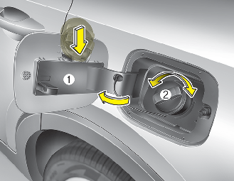 To remove the fuel tank cap (2), turn it counterclockwise. You may hear a hissing noise as the pressure inside the tank equalizes.