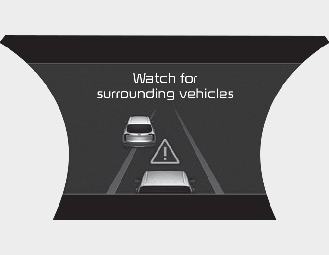 If the vehicle ahead (vehicle speed: less than 30km/h) disappears to the next lane, the warning chime will sound and a message "Watch for surrounding vehicles" will appear. Adjust your vehicle speed for vehicles or objects that can suddenly appear in front of you by depressing the brake pedal.