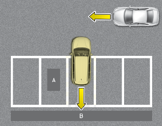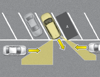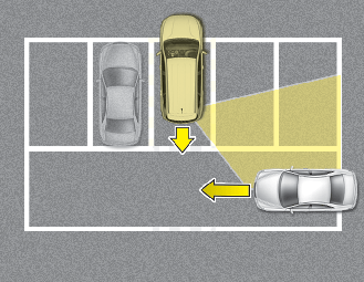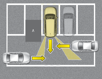 If the vehicle is parked rearward and the sensor detects the another vehicle in the rear area of the parking space, the system can warn or control braking. Always pay attention to the parking space while driving.