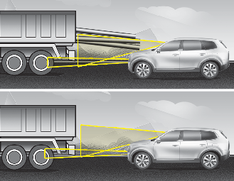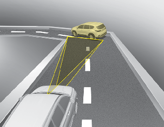 When the vehicle in front has heavy loading extended rearward, or when the vehicle in front has higher ground clearance, it may induce a hazardous situation. Always pay attention to road and driving conditions, while driving and, if necessary, depress the brake pedal to reduce your driving speed in order to maintain distance.
