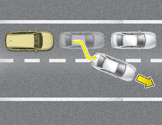 When a vehicle changes lanes in front of you, the FCA system may not immediately detect the vehicle, especially if the vehicle changes lanes abruptly. In this case, you must maintain a safe braking distance, and if necessary, press the brake pedal to reduce your driving speed in order to maintain a safe distance.