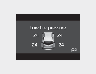 When the tire pressure monitoring system warning indicators are illuminated and warning message displayed on the cluster LCD display, one or more of your tires is significantly under-inflated. The low tire pressure position telltale light will indicate which tire is significantly under-inflated by illuminating the corresponding position light.