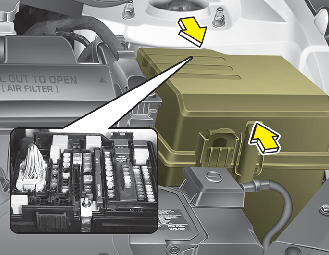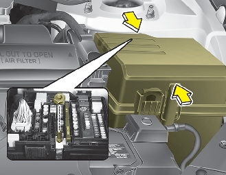 After checking the fuse panel in the engine compartment, securely install the fuse panel. If not, cover through the audible clicking sound. Electrical failures may occur from water contact.