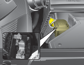 The electronic system may not function correctly even when the engine room and internal fuse box's individual fuses are not disconnected. In such case the cause of the problem may be disconnection of the main fuse (BFT type), which is located inside the positive battery terminal (+) cap. Since the main fuse is designed more intricately than other parts, visit a professional workshop. Kia recommends to visit the nearest authorized Kia dealer/service partner.