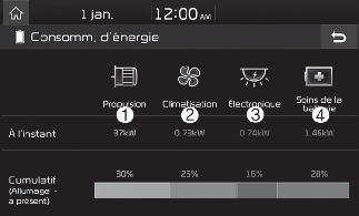 Vous pouvez vérifier la consommation d'énergie actuelle de chaque système du véhicule.