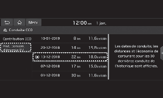 Vous pouvez consulter les informations du niveau ECO et l'historique de conduite ECO.
