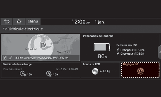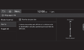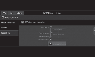 Vous pouvez définir le Mode hiver, l'avertissement et les fonctions d'itinéraire en EV.