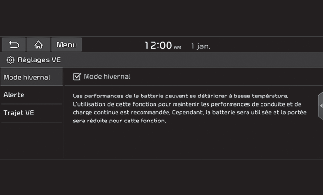 Le mode Hiver est efficace en hiver lorsque la température de la batterie haute tension est basse.