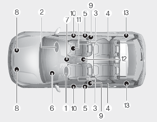Le SRS ne peut fonctionner que lorsque le bouton START/STOP (démarrage/arrêt) est en position ON. Si le témoin du coussin gonflable SRS ne s'allume pas ou s'il reste allumé pendant plus d'environ 6 secondes lorsque le bouton START/STOP (démarrage/arrêt) est en position ON, une fois que le véhicule est en mode prêt ou s'il s'allume pendant la conduite, le SRS ne fonctionne pas correctement. Si cela se produit, faire vérifier votre véhicule par un concessionnaire Kia agréé.