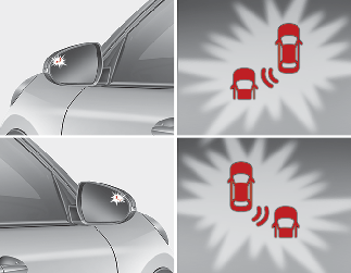 Si le véhicule détecté n'est plus dans la zone de l'angle mort, l'avertissement s'éteint en fonction des conditions de conduite du véhicule.