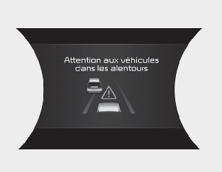 Si le véhicule qui précède (vitesse du véhicule : inférieure à 30 km/h (20 mi/h)) se déplace dans l’autre voie, le signal sonore retentit et un message apparaît. Régler la vitesse de votre véhicule pour les véhicules ou les objets qui peuvent surgir brusquement devant vous en appuyant sur la pédale de frein, en fonction de l'état de la route et des conditions de circulation.