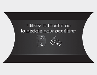 Dans la circulation, votre véhicule s'arrêtera si le véhicule qui vous précède s'arrête. De plus, si le véhicule qui vous précède commence à se déplacer, votre véhicule démarrera également. Par contre, si le véhicule s’arrête, vous devez appuyer sur la pédale d’accélérateur ou sur le bouton RES+ pour commencer à conduire.
