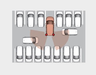 - Assistance à l’évitement des collisions avec la circulation transversale arrière.