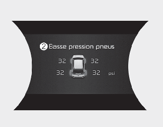 Si la pression des pneus n'est pas affichée lorsque le véhicule est à l'arrêt, le message « Drive to display » (conduire pour afficher) s'affiche. Après le trajet, vérifiez la pression des pneus.