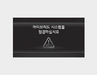 하이브리드 제어 시스템과 관련된 센서의 고장이나 액츄에이터, 컴퓨터 등에 이상이 있을 때 경고문이 표시됩니다. 가까운 자사 직영 서비스센터나 서비스협력사에서 점검 및 정비를 받으십시오.